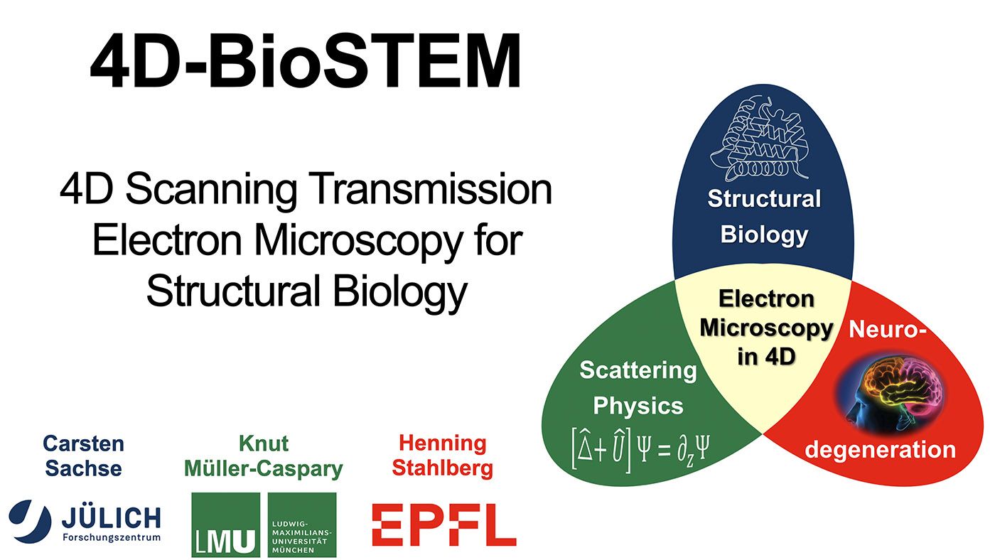 The 4D-BioSTEM project is a teamwork of three labs: The group of Prof. Carsten Sachse at the Ernst-Ruska Center in Jülich, the group of Prof. Knut Müller-Caspary at the LMU, and the group of Prof. Henning Stahlberg at the EPFL and Uni Lausanne.